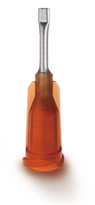 Multi-needle nozzle ideal for dispensing medium to high viscosity liquids. Number of needles and needle length can be selected. The “multi-chamber nozzle” has tapered needle tips.